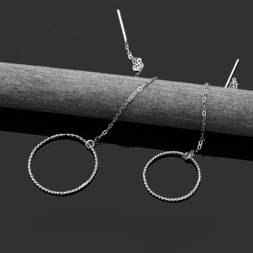 Magnifiques boucles d’oreilles pour femme en or blanc 14K, ornées de pierres Cubic Zirconia (CZ) rondes et brillantes. Design élégant en style “threader drop”, fait main pour un rendu unique.