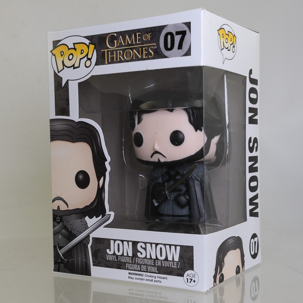 Les fans de Game of Thrones, cette figurine Funko Pop ! est pour vous ! Elle représente Jon Snow, le héros emblématique de la série, avec son look classique. C'est le modèle #07 de la collection. La figurine est en vinyle, mesure environ 10 cm de haut, et est dans son état neuf, jamais sortie de sa boîte (condition à vérifier avec le vendeur). La référence EAN est 849803047771. Parfaite pour compléter votre collection de Pop !, pour décorer votre bureau ou pour offrir à un passionné de la saga. Le design est typique de Funko : tête surdimensionnée et style mignon. Le personnage est bien reconnaissable. Vérifiez l'annonce pour savoir si la boîte est incluse et en quel état. Un must-have pour tout collectionneur de Game of Thrones !