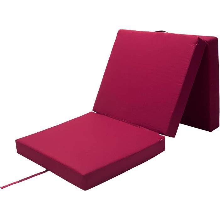Le truc génial ? Il a trois vies : 1) Un matelas d'appoint pour les invités (190x60cm, 195x80cm ou 195x120cm). 2) Un siège cube avec dossier quand tu le plies d'une certaine façon (dimensions données dans l'annonce). 3) Une base de jeu pour les enfants ou un matelas de camping.
