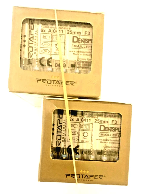 Matériel professionnel pour dentistes et endodontistes ! Ce pack contient 12 fichiers rotatifs en alliage Nickel-Titane (NiTi) de la gamme ProTaper de la marque Dentsply. Conçus pour être utilisés avec un moteur à contre-angle universel, ils permettent la préparation des canaux radiculaires avec précision et efficacité. L'alliage NiTi offre une flexibilité et une mémoire de forme exceptionnelles, réduisant les risques de fracture à l'intérieur de la dent. Conditionnement neuf, sous blister stérile d'origine (à vérifier). Un stock essentiel pour tout cabinet dentaire pratiquant des traitements endodontiques (dévitalisations). La qualité Dentsply assure une performance et une fiabilité reconnues. Pensez à vérifier la compatibilité avec votre moteur et à suivre les protocoles de stérilisation entre chaque usage. Un investissement dans la qualité des soins pour vos patients.