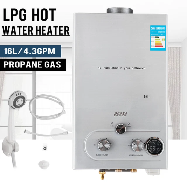 Besoin d'eau chaude instantanée et abondante pour votre douche, votre cuisine ou votre atelier ? Ce chauffe-eau instantané à gaz (propane ou butane) délivre jusqu'à 16 litres d'eau chaude par minute, avec une puissance de 32KW. Il chauffe l'eau à la demande, donc pas de ballon à attendre ni de gaspillage d'énergie. Équipé de sécurités : anti-surchauffe (arrêt au-dessus de 75°C), allumage électronique, évacuation des fumées. Pression d'eau supportée de 0,02 à 0,8 MPa. En acier, couleur argenté. Neuf, dans son carton. Parfait pour une maison, un camping, un chantier, ou en remplacement d'un ancien appareil. Installation par un professionnel recommandée (gaz et évacuation).