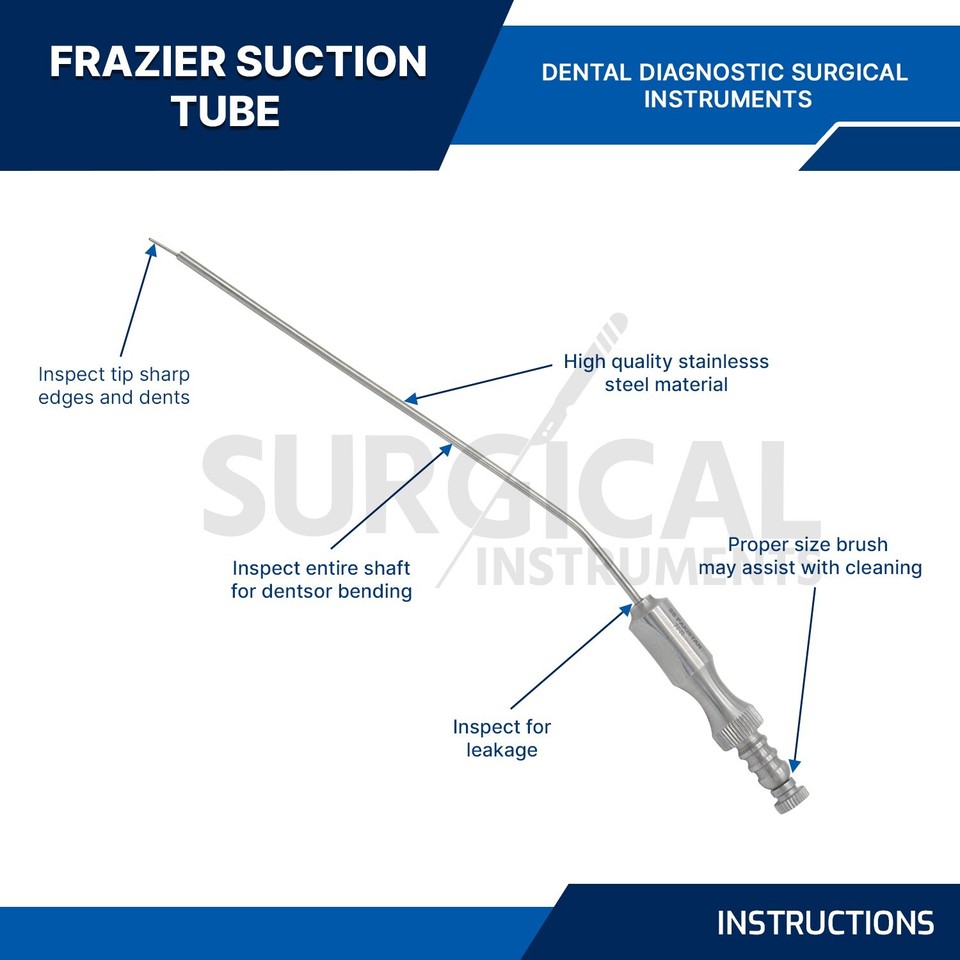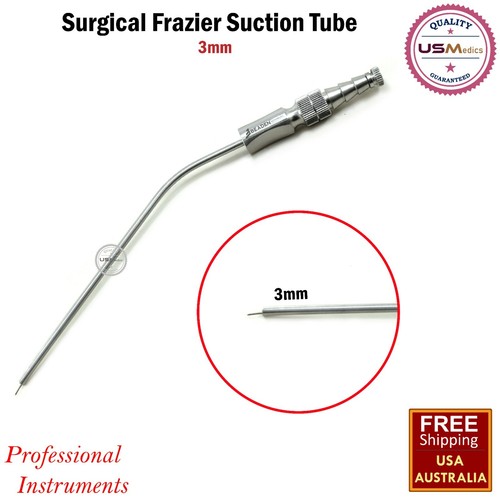 Destiné aux professionnels de santé (chirurgiens ORL, dentistes, chirurgiens généraux, etc.), cet instrument est une canule d'aspiration de type Frazier. Elle mesure 2.67 mm de diamètre et est fabriquée en acier inoxydable de qualité chirurgicale, garantissant stérilisation et durabilité. Elle est neuve, dans son emballage protecteur. Ce type de canule fine et courbée est utilisé pour aspirer les fluides (sang, salive) dans des zones précises et peu accessibles pendant les interventions chirurgicales, notamment en chirurgie ORL, maxillo-faciale ou dentaire. La marque est Medspo, fabriqué au Pakistan, avec une garantie de 3 ans. Un instrument de base et essentiel pour tout bloc opératoire ou cabinet spécialisé.
