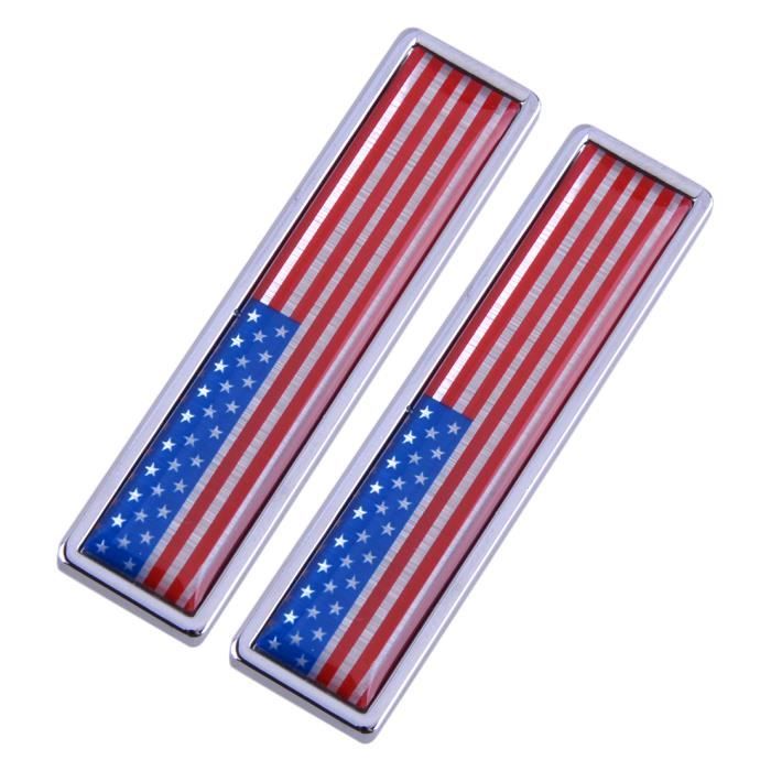 Montrez votre style avec ce pack de 2 autocollants 3D en métal représentant le drapeau américain ! Dimensions : 5 pouces de large sur 2,75 pouces de haut. En aluminium avec une finition métallique rouge, bleu et argentée, ils ont un relief qui donne un effet premium. La colle au dos est forte, conçue pour l'extérieur. Vous pouvez les coller sur le pare-chocs, le capot, le hayon, les portières... à peu près n'importe où sur la carrosserie. Convient pour voiture, van, moto, camping-car. La marque est Riley Express, avec une garantie de 90 jours. Parfait pour personnaliser votre véhicule, pour un événement spécial, ou juste pour afficher vos couleurs. Facile à poser – nettoyez la surface, décollez le backing, et appuyez fermement. Chaque pack contient 2 stickers, donc vous pouvez en mettre un de chaque côté, ou en offrir un. Neuf, livré sous film protecteur. Un petit accessoire qui fait toute la différence !