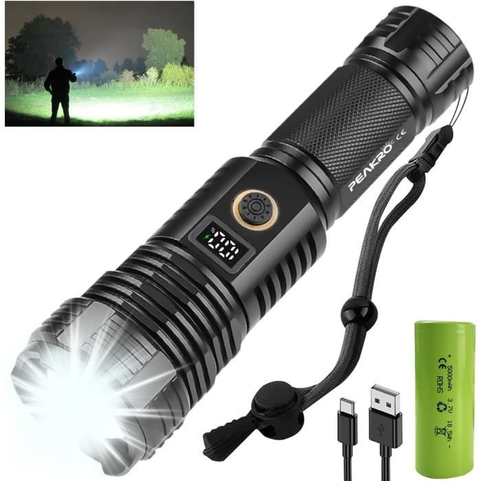 Une lampe de poche hyper puissante, vraiment pratique pour le camping, la randonnée ou la survie ! Elle affiche 90000 lumens – oui, c'est très lumineux – et propose un zoom réglable pour concentrer ou élargir le faisceau. Elle est étanche, donc pas de souci sous la pluie. Le design est 2 en 1, tu peux l'utiliser comme lampe classique ou avec une fonction supplémentaire (certains modèles ont une base magnétique ou une sangle). Les modes sont : haut, bas, flash, stroboscope. C'est du markenlos (sans marque), mais la construction est solide, en noir. Poids : environ 227g par lampe. La batterie n'est pas incluse, prévois des piles ou accus compatibles. Parfaite pour les secours, les travaux en extérieur, la voiture ou la maison en cas de panne de courant. Un outil fiable, compact et costaud. Attention, 90000 lumens, c'est vraiment intense – à utiliser avec précaution. Une bonne affaire pour une lampe polyvalente et puissante !