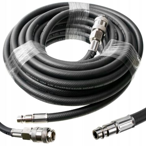 Besoin d'un tuyau d'air plus long ou de remplacer ton vieux tuyau qui fuit ? Celui-ci est parfait : 1/2 de pouce de diamètre, 50 pieds (environ 15 mètres) de long. Il supporte jusqu'à 300 PSI (pression max), donc compatible avec la plupart des compresseurs. Matériau hybride caoutchouc et PVC, robuste et flexible. Couleur rouge. Marque sans marque, mais de bonne qualité. Idéal pour l'atelier, le garage, les travaux de peinture au pistolet, le gonflage, etc. Pas de UPC. Livré neuf en emballage d'origine. Tu pourras enfin atteindre tous les coins de ton atelier sans déplacer ton compresseur !