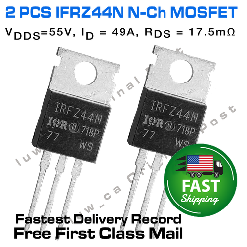 Les makers et électroniciens, voici un composant de base très utile ! Ce lot de 2 MOSFET IRFZ44N (canal N) de chez International Rectifier est un must-have pour contrôler de fortes charges avec un faible signal. Caractéristiques : tension drain-source max 55V, courant continu max 49A. Parfait pour piloter des moteurs DC, des relais, des LED puissantes, ou pour des commutations de puissance dans vos projets Arduino, Raspberry Pi, ou autres microcontrôleurs. Ils sont neufs, en emballage d'origine. Montage simple sur breadboard ou PCB, attention à la dissipation thermique (prévoir un radiateur pour des courants élevés). Vendeur situé aux USA, donc livraison parfois plus rapide selon votre région. Un composant fiable et économique pour tous vos projets qui nécessitent de la puissance. Commandez ce lot, vous en aurez toujours besoin !