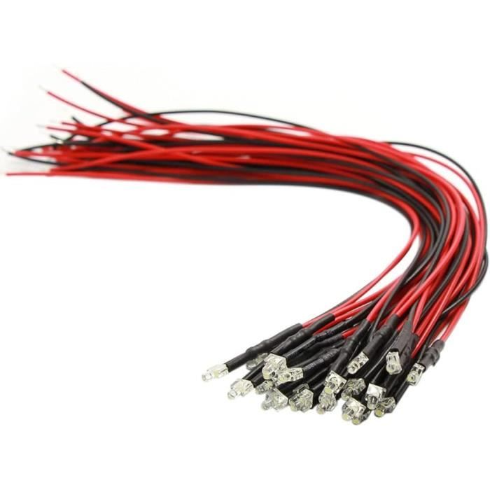 Parfait pour tous tes projets d'éclairage DIY à faible tension ! Ce lot comprend 20 LEDs (diodes électroluminescentes) de 5mm, de couleur blanc chaud (lumière douce et agréable). Le gros avantage : elles sont déjà précâblées, avec une résistance intégrée calculée pour une tension de 10 à 15 Volts (idéal en 12V). Tu n'as donc pas besoin de t'embêter avec des calculs de résistances. Les fils font environ 15 cm de long, et les soudures sont protégées par une gaine thermorétractable. La luminosité est élevée (13 000 à 16 000 mcd), avec un angle de vue de 20-30 degrés. Marque : Lighthouse LEDs. Fabriqué aux USA. Parfait pour éclairer des maquettes, des costumes, des vitrines, des véhicules radio-commandés, ou créer des ambiances. Simple à utiliser : branche le + et le - sur ta source 12V, et c'est parti !