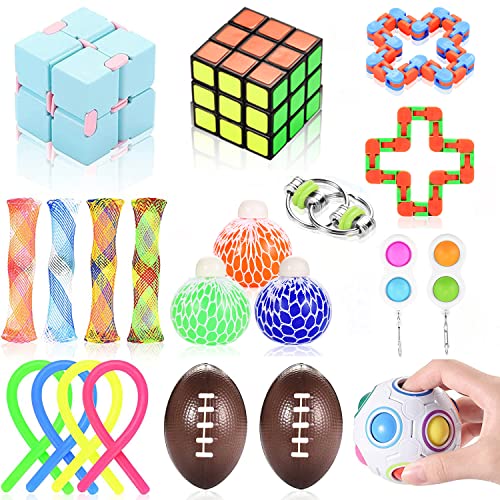 Salut ! Pour ceux qui ont besoin de garder les mains occupées, de gérer le stress ou l'anxiété, ou tout simplement pour s'amuser, ce pack de 22 jouets fidget Nestling est top. Neuf, jamais ouvert, il contient une variété de textures, de formes et de mécanismes : trucs à presser, à tourner, à étirer, à tripoter... Parfait pour les enfants, les ados, les adultes, les personnes avec TDAH ou besoin sensoriel. Marque Branded, modèle SFT001, réf. 22475. Utilisable à la maison, au bureau, en classe (en silence !), en voyage. Un excellent rapport quantité/prix pour découvrir ce qui te plaît. Attention, certains petits éléments peuvent ne pas convenir aux très jeunes enfants sans surveillance. Amuse-toi bien !