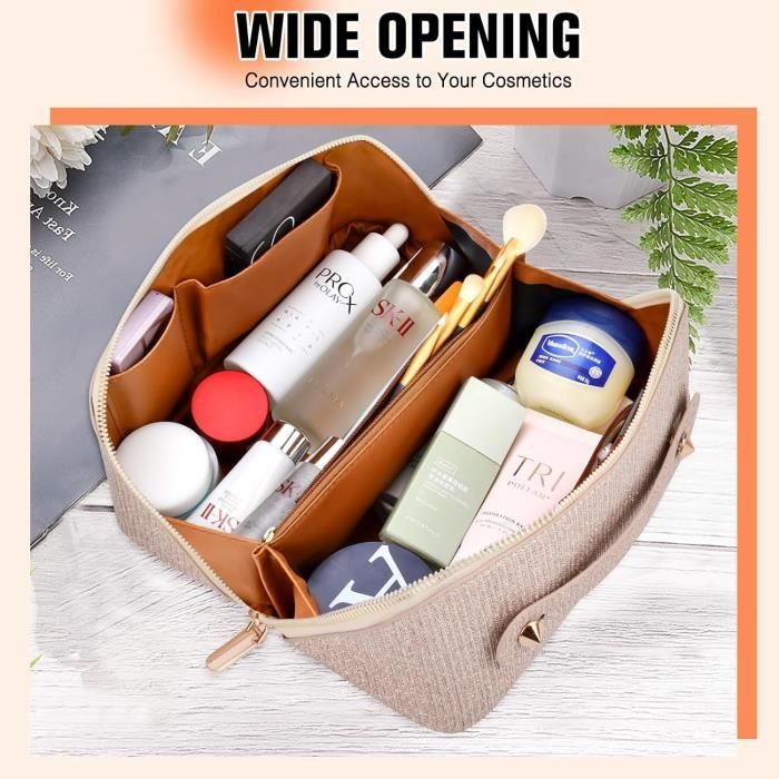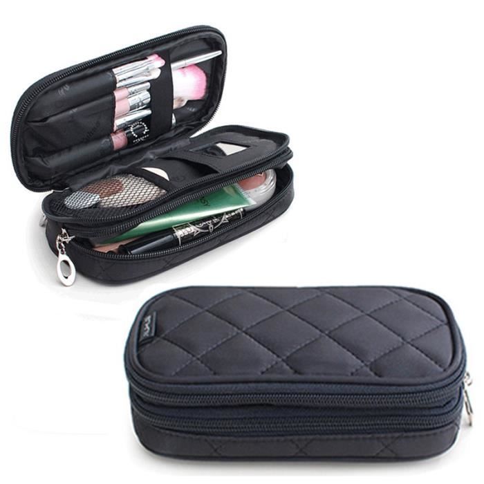 Une trousse de maquillage à la fois pratique et stylée pour emporter vos essentiels beauté partout ! Dimensions 22cm de long sur 14cm de haut, format lettre, donc elle glisse facilement dans un sac à main ou une valise. En toile résistante, avec une fermeture zip solide pour éviter les fuites. La couleur noire va avec tout. Produit neuf, encore avec ses étiquettes d’origine, fabriqué au Royaume-Uni. Pas de marque spécifique, mais la finition est soignée. Idéale pour les voyages, les weekends ou même pour ranger vos pinceaux et produits sur votre coiffeuse. Si vous cherchez une trousse simple, spacieuse et durable, c’est celle-ci ! Livrée dans son emballage d’origine (souvent une pochette en plastique). Parfaite pour offrir ou pour s’offrir.