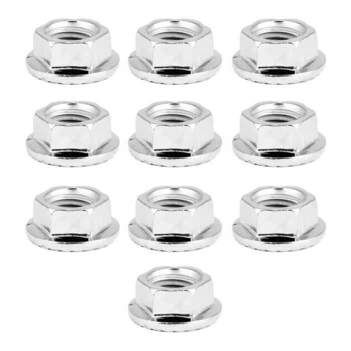 Pour tes assemblages mécaniques qui doivent tenir bon ! Voici un lot de 10 écrous à bride (flange nuts), en acier, avec un filetage fin métrique M12 x 1,25. Le filetage fin offre souvent un meilleur serrage et est utilisé sur certaines pièces critiques (suspensions, direction...). Ils sont de grade 10.9, ce qui indique une très haute résistance. La bride intégrée agit comme une rondelle élargie, répartissant la pression et évitant de marquer la surface. Le serrage se fait avec une clé de 17mm. Finition zinc pour une protection contre la rouille. Marque Rivercity Fastener & Supply. Parfaits pour la mécanique auto, moto, l'agroéquipement, ou tout bricolage nécessitant des fixations solides et fiables. Avec 10 pièces, tu as de la marge. Des écrous sérieux pour des assemblages sérieux.