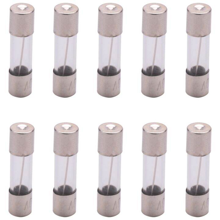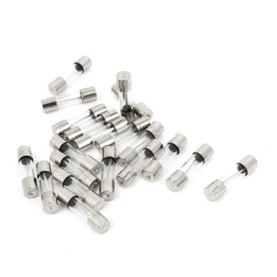 Voici un lot de secours bien pratique : 10 fusibles à cartouche en verre, de taille standard 5 mm de diamètre par 20 mm de longueur. Ils sont calibrés pour 25 ampères (F25A) et supportent une tension jusqu'à 250 volts.
