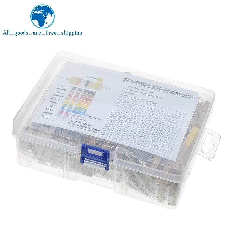Parfait pour les passionnés d'électronique, les étudiants, ou les bricoleurs ! Ce kit contient 1000 résistances film carbone, réparties en 100 valeurs différentes, allant de 1 ohm à 10 mégohms. Chaque résistance a une puissance de 1/2 watt et une tolérance de 5%. Elles sont neuves, non utilisées, et généralement livrées dans un organisateur pratique ou des sachets séparés. Marque générique, mais qualité correcte pour les projets DIY, les réparations, ou les prototypes. Pas de MPN ou UPC spécifique. Idéal pour avoir sous la main une large gamme de valeurs sans devoir commander à chaque fois. Les pattes sont en fil d'étain, prêtes à être soudées. Un essentiel dans tout atelier d'électronique. Vérifiez les valeurs avant utilisation avec un multimètre si besoin. Livraison en colis sécurisé. Un achat économique et pratique !