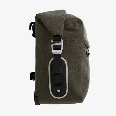 Salut les cyclistes urbains ! Ces sacoches Brooks Bricklane sont super pratiques : elles s'enroulent sur elles-mêmes quand elles sont vides, et se déplient jusqu'à 15L chacune (donc 30L au total). Fabriquées par Brooks, la référence du style rétro et qualité. Fixation sur porte-bagages standard avec des sangles en cuir élégantes. Dimensions : 36 x 35,5 cm, poids 950g la paire. Parfaites pour les courses, le travail, ou une balade à vélo de ville ou trekking. Solides, étanches probablement, et tellement plus stylées qu'un sac à dos. Neuf, jamais utilisé, dans leur emballage. Si tu veux transporter tes affaires avec classe, c'est le top !