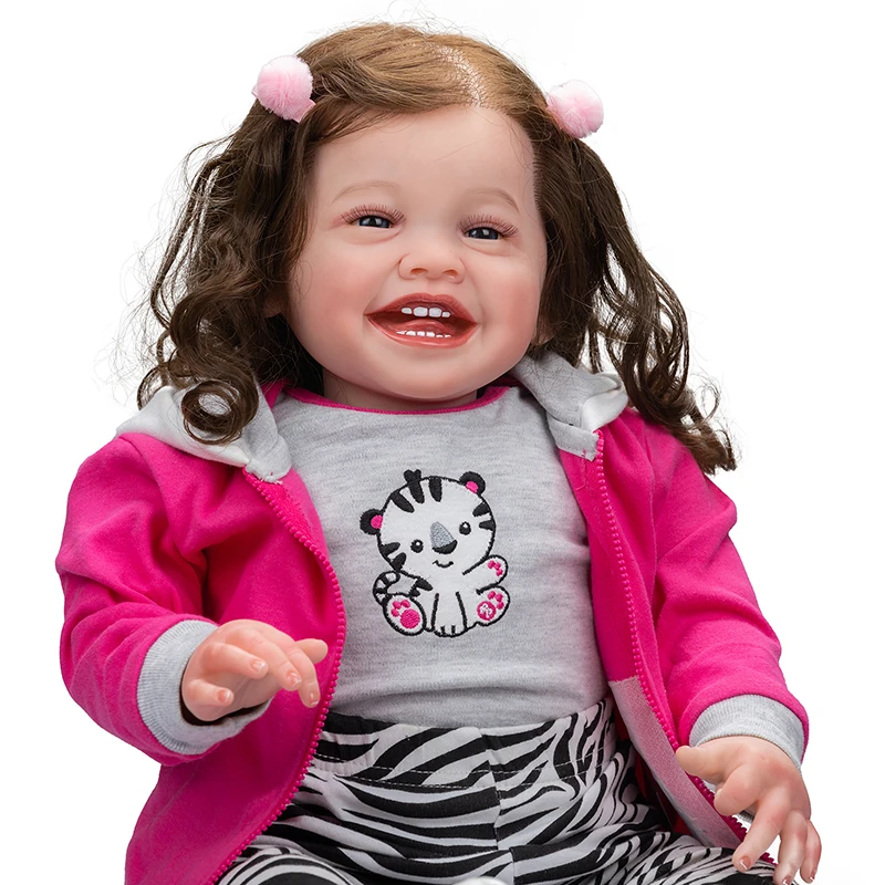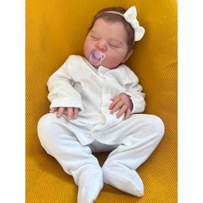 Cette poupée reborn est une vraie œuvre d'art ! Elle mesure 30 pouces (environ 76 cm), taille d'un vrai bébé. C'est une petite fille, peinte à la main de façon hyper réaliste, avec une complexion claire. Ses cheveux sont noirs, raides, et enracinés un par un à la main pour un effet naturel incroyable. Elle est en vinyle et tissu, habillée (la tenue est aléatoire). C'est un produit neuf, non ouvert, fait main. Elle a un regard aléatoire (couleur des yeux surprise). Parfaite pour les collectionneurs de poupées reborn, comme décoration réaliste, ou comme cadeau émouvant pour quelqu'un qui les apprécie. Convient aux enfants à partir de 2 ans (sous surveillance car fragile). Non toxique, vêtements amovibles. Un objet de collection qui inspire un sentiment de réalisme et de tendresse. Prête à être choyée !
