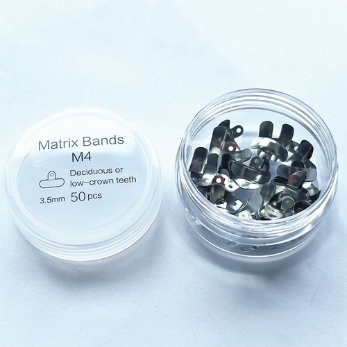 Destiné aux professionnels de la dentisterie (dentistes, orthodontistes, laboratoires). Cette matrice dentaire sectionnelle 3D de la marque Dentpark est conçue pour les restaurations de molaires. Modèle spécifique pour les molaires hautes, probablement la taille n°4, avec une bande en acier inoxydable de 6.5 mm de large. Le design 3D avec des trous et des protubérances permet une meilleure adaptation et rétention lors des obturations (composites, amalgames). Vendu neuf, dans son emballage d'origine. Non modifié. Fabriqué en Chine. Un instrument essentiel pour réaliser des restaurations précises et anatomiques. À usage professionnel strict. Assurez-vous qu'il correspond à votre pratique et à la taille dentaire souhaitée. Un outil de travail quotidien pour beaucoup de praticiens.