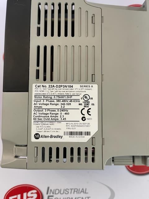 Pour les professionnels de l'automatisme et de la maintenance industrielle ! Ce variateur de fréquence AC Allen-Bradley PowerFlex 4, modèle 22A-D2P3N104, est neuf et scellé dans son emballage d'origine (surplus de stock). Puissance : 1 cheval (environ 0,75 kW). C'est un composant fiable pour contrôler la vitesse des moteurs asynchrones triphasés. Parfait pour remplacer un variateur défectueux ou pour un nouveau projet d'automatisation. Marque Allen-Bradley, qualité industrielle reconnue. Vérifie bien les caractéristiques techniques (tension d'entrée, courant de sortie) pour ton application. Livraison rapide, prêt à être intégré dans ton armoire électrique.