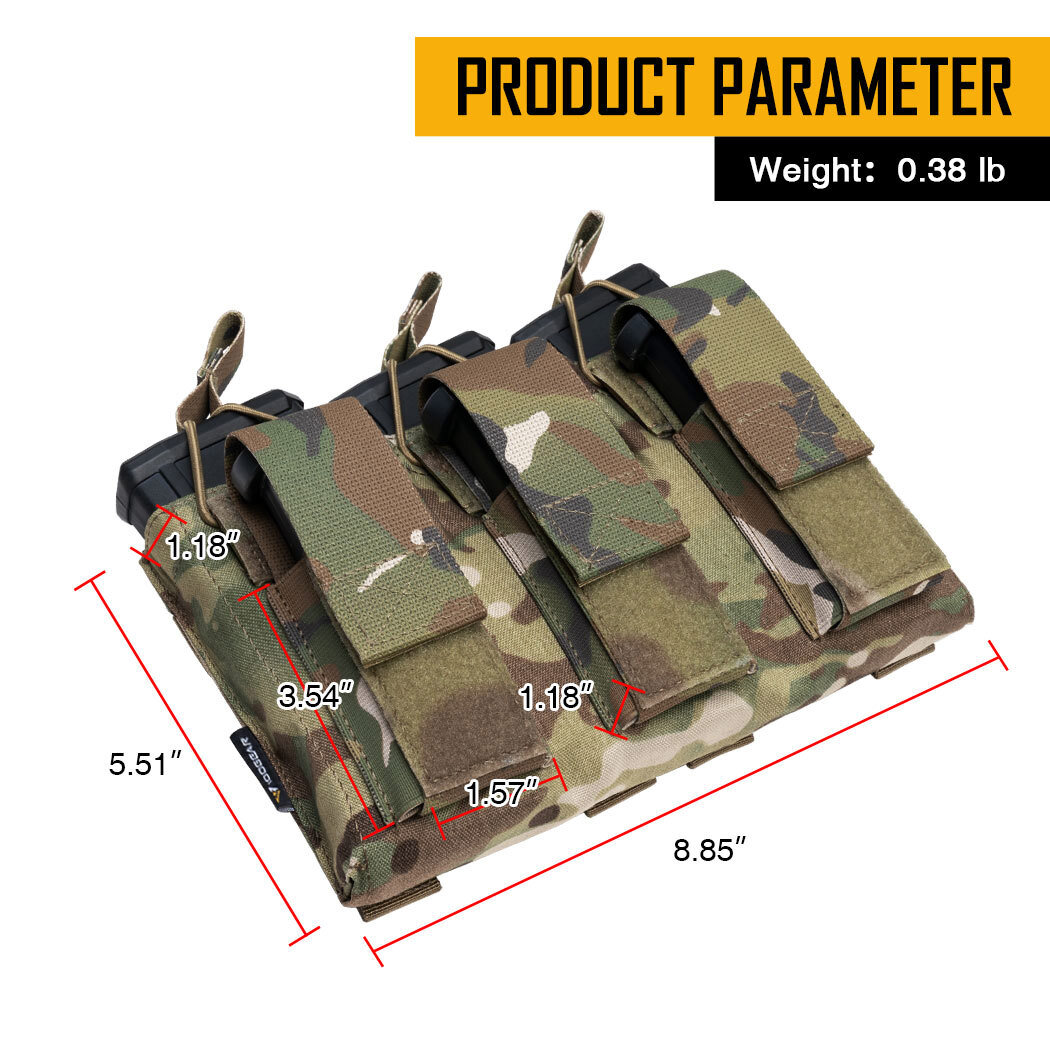 Pour les joueurs d'airsoft, paintball ou les passionnés de tactique ! Cette pochette triple IDOGEAR (modèle IG-BG3545) peut accueillir 3 chargeurs type 5.56 (ou pistolets). Ouverture rapide par le haut, fixation MOLLE solide sur un gilet ou un sac. Matière 500D nylon résistant. Fabriqué en Chine, qualité correcte pour un usage récréatif. Parfaite pour garder tes chargeurs à portée de main pendant les games. Neuf en emballage. Si tu veux optimiser ton équipement de jeu, cette pochette est un accessoire pratique.