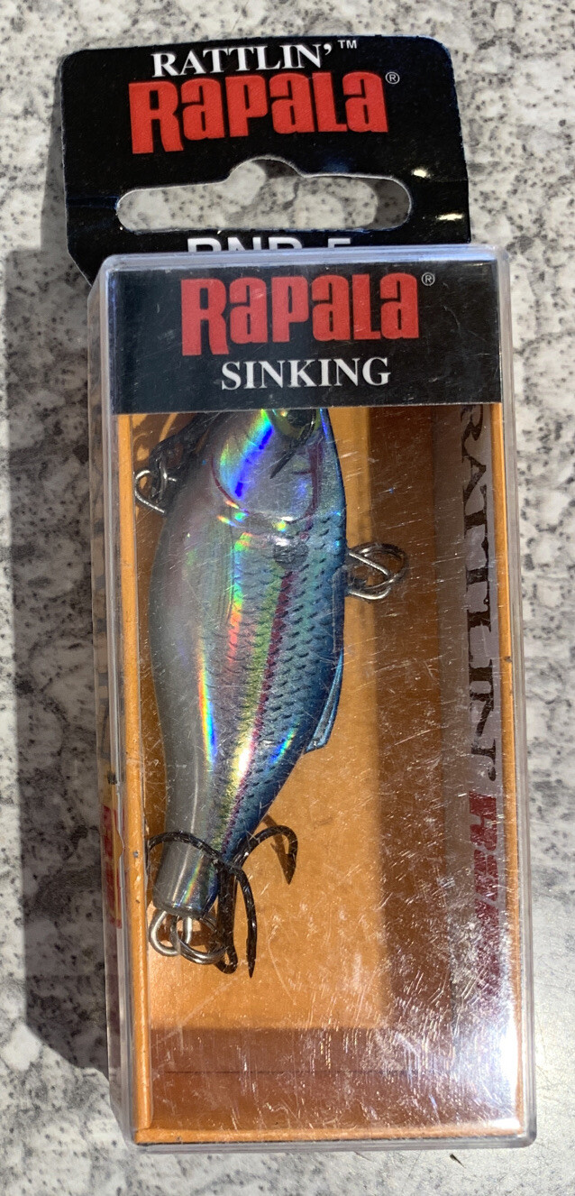 À la pêche aux carnassiers (brochet, perche, sandre...), le Rapala Rattlin' Rap est un leurre incontournable ! Ce modèle RNR-5 en finition chrome bleu est particulièrement efficace. C'est un crankbait (leurre dur) qui possède une bille à l'intérieur qui émet un fort \cliquetis\ (rattle) quand tu le ramènes, attirant les poissons de loin. Sa nage est très vibrante et irrégulière, imitant un petit poisson fourrage (shad) blessé. Parfait pour prospecter des zones larges, pêcher près des herbiers ou des structures. Il est neuf, dans son emballage d'origine. Un classique intemporel de la marque Rapala, qui a fait ses preuves sur tous les plans d'eau. Un must dans la boîte à leurres de tout pêcheur actif.