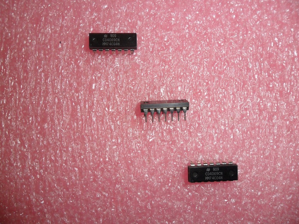 Pour les passionnés d'électronique ou les réparateurs, voici un lot de 5 circuits intégrés MM74C04N. Ce sont des inverseurs hexagonaux (ou portes NON) en technologie CMOS, dans un boîtier DIP standard à 14 broches.