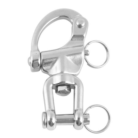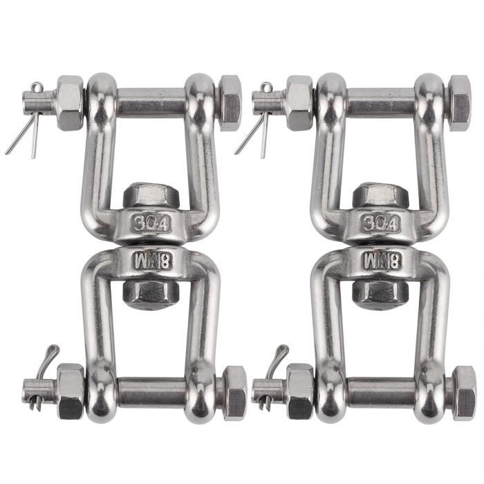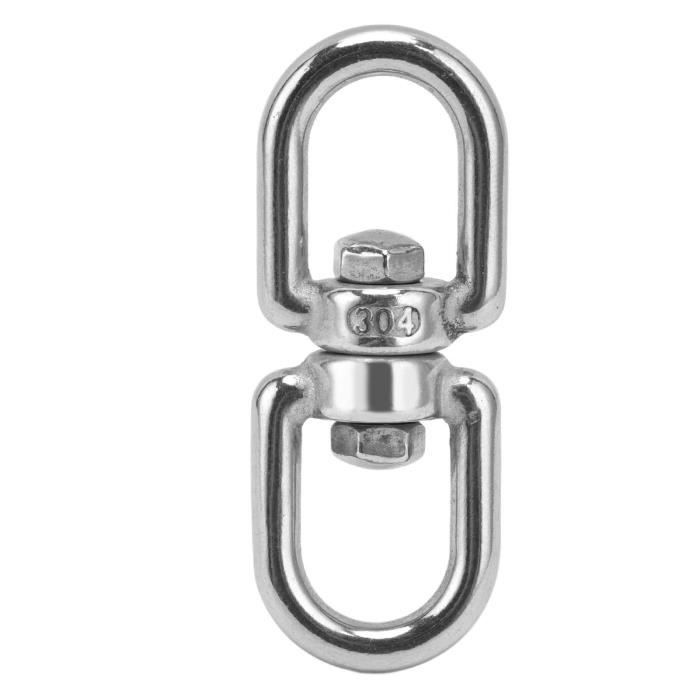 Une manille marine robuste en acier inoxydable, de 5 pouces de longueur (environ 127 mm). La particularité est qu'elle est pivotante : l'œil (la boucle) peut tourner sur l'axe du corps, ce qui évite que le câble ou la chaîne ne se vrille. Indiquée pour une charge de travail d'environ 377 lbs (livres), c'est un accessoire essentiel pour l'amarrage, le gréement ou l'ancrage sur les petits à moyens bateaux.