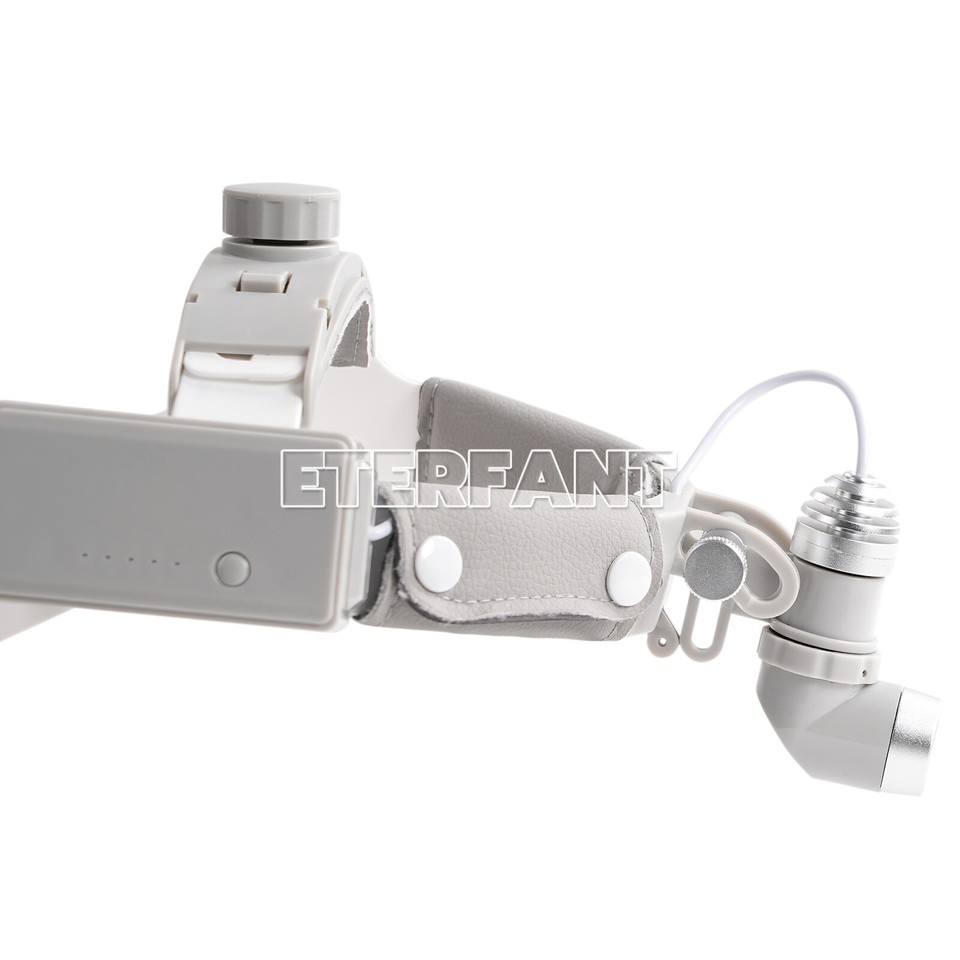 Hey ! Travailler avec précision demande une bonne lumière. Ce bandeau dentaire combine une loupe frontale grossissante 3.5x et un éclairage LED puissant de 10W. La luminosité est réglable, entre 15 000 et 40 000 lux, pour t’adapter à chaque situation. Le spot lumineux est aussi ajustable, de 1 à 9 mm à 42 cm de distance. L’autonomie est d’au moins 6 heures sur une charge de 4 heures, alimentée sur du 100-240V. Les LED ont une durée de vie d’environ 20 000 heures. La marque est ETERFANT, référence TD104030017. Le bandeau est neuf, livré dans sa boîte (environ 24x23x15 cm). Super pour les dentistes, chirurgiens-dentistes, prothésistes ou même les bijoutiers et modélisateurs qui ont besoin d’un éclairage focalisé et d’un grossissement confortable. Plus besoin de se contorsionner pour bien voir un canal ou un détail. Confortable, pratique, et ça change vraiment la donne lors des longues séances de travail. Vérifie bien l’ajustement et la charge avant la première utilisation !