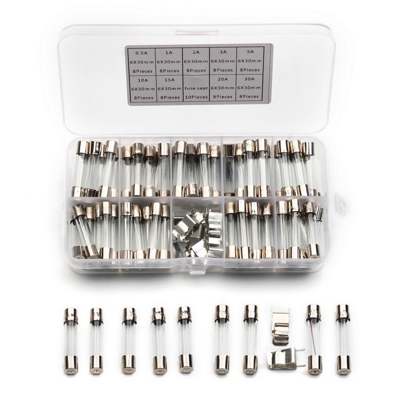Un indispensable pour tout bricoleur électrique, réparateur d'électronique ou propriétaire soucieux de la sécurité ! Ce lot économique contient 72 fusibles à cartouche en verre de format standard 6x30mm (6mm de diamètre, 30mm de long). Ils sont de type \Fast Blow\ ou rapides, ce qui signifie qu'ils coupent le circuit presque instantanément en cas de surintensité, protégeant ainsi vos appareils sensibles.
