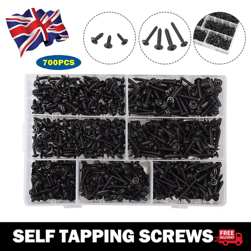 Un gros kit pour tous vos projets de fixation sur panneaux de bois, PVC, métal fin… Ce lot contient 700 vis auto-taraudeuses (qui forent et vissent en une seule étape). Elles ont une tête à bride (large pour une bonne répartition de la pression) et un empreinte POZI (comme une Phillips améliorée). Elles sont en acier, avec un revêtement noir. Différentes tailles sont incluses : probablement des diamètres de 6g, 8g et 10g, avec différentes longueurs. Marque Bolt World. C'est du neuf, en vrac ou en sachet. Parfait pour le bricolage, la menuiserie, l'installation de placards, ou pour avoir un stock bien fourni dans l'atelier. Un achat économique à long terme !