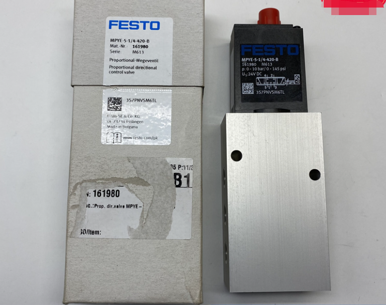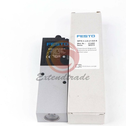 Vanne proportionnelle Festo neuve, d’origine, sous emballage. Référence MPYE-5-3/8-420-B, numéro de série 161981. Pour régulation précise de débit ou de pression dans les systèmes pneumatiques industriels. Utilisée en automatisation, robotique, machines de production. Qualité allemande, précision et fiabilité. À installer par un technicien compétent. Livrée avec ses connecteurs. Pièce d’origine, parfaite pour remplacement ou nouvel équipement. Un composant clé pour les lignes automatisées.