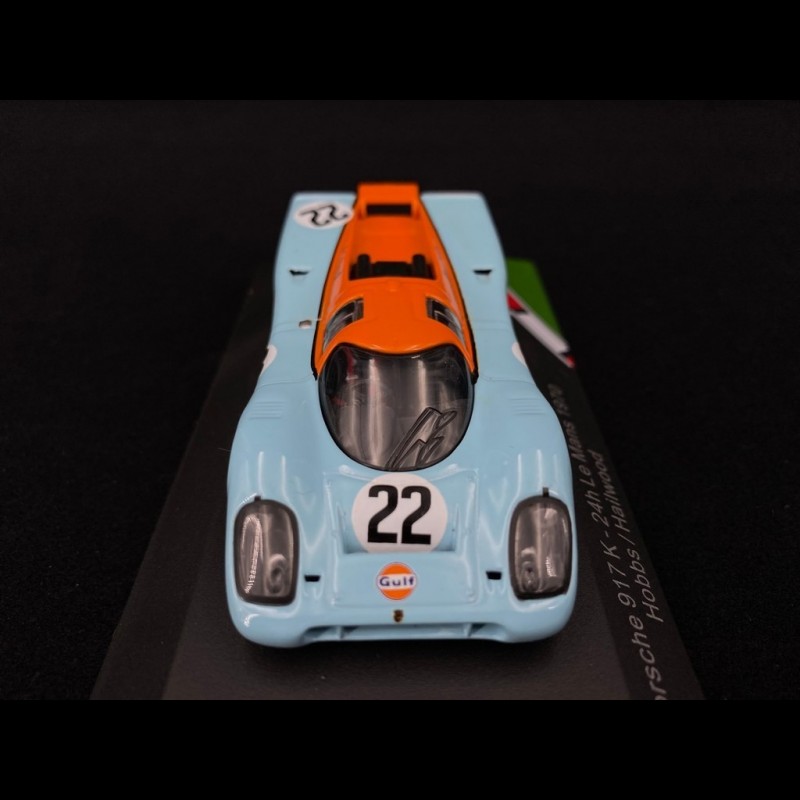 Bonjour aux collectionneurs de voitures de course ! Cette maquette de la Porsche 917 K aux couleurs Gulf est tout simplement magnifique. Elle est neuve, jamais sortie de sa boîte. À l'échelle 1:43, fabriquée en métal avec des finitions soignées, elle reproduit fidèlement la voiture qui a couru aux 24 Heures du Mans en 1970. La marque CMR est réputée pour la qualité de ses modèles. C'est une pièce idéale pour enrichir votre vitrine, pour offrir à un passionné d'automobile ou pour commencer une collection sur les prototypes des années 70. Tranche d'âge recommandée : à partir de 14 ans. Référence CMR43001, EAN 0641243037011. Attention, c'est un modèle statique, pas un jouet. Avec sa livrée bleue et orange iconique, elle attire tous les regards. Une pièce de choix qui fera craquer les amateurs de course et de belles mécaniques. Prête à trôner sur votre étagère !