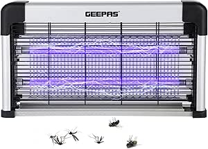 Les beaux jours arrivent, et avec eux... les moustiques et les mouches qui nous embêtent ! Cette lampe tueuse d'insectes Geepas de 30 watts va t'aider à retrouver la paix. Le principe est simple : une lumière UV violette attractive les attire, et une grille électrique à haute tension les élimine instantanément. C'est silencieux, sans produits chimiques, et ça sent pas mauvais. Modèle GBK25603UK, fabriqué en Chine. Parfaite pour l'intérieur (maison, bureau, restaurant, magasin) ou pour une terrasse couverte. Branche-la simplement sur une prise. Elle couvre une bonne surface. Pense à la nettoyer de temps en temps. Bien plus efficace et écologique qu'une bombe aérosol ! Livrée neuve dans sa boîte. Dormez sur vos deux oreilles sans les bourdonnements et les piqûres. L'été serein, ça n'a pas de prix !