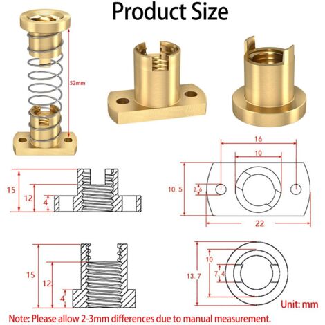 Des écrous à ressort T8 pratiques et solides, parfaits pour vos projets d’impression 3D, CNC ou bricolage technique. Ils sont conçus pour éviter le jeu dans les axes, ce qui améliore la précision de vos machines. Filetages disponibles : 2mm, 4mm et 8mm. En laiton doré, ils mesurent environ 14/22 mm de diamètre et 50 mm de long. Produits neufs, jamais utilisés, vendus dans leur emballage d’origine. Idéal pour remplacer des pièces usées ou améliorer votre installation. Fabriqués en Chine, sans marque spécifique, mais de qualité correcte pour un usage amateur ou semi-pro. Parfait pour les passionnés de modélisme, d’usinage ou de bricolage technique. Les ressorts intégrés permettent un maintien ferme et réduisent les vibrations. Livraison sous forme de lot selon vendeur. Pas de MPN spécifique. Couleur or. Peuvent aussi servir en robotique ou pour fixer des capteurs. Si vous cherchez à stabiliser vos axes sur une imprimante 3D DIY ou une petite fraiseuse, ces écrous sont un bon choix !
