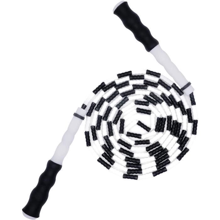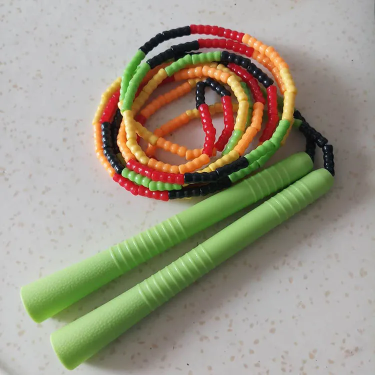 Retour en enfance ou séance de cardio efficace ! Cette corde à sauter en perles arc-en-ciel est durable, colorée et fait un bruit satisfaisant à chaque tour. Longueur totale d'environ 7 pieds (84 pouces), perles en plastique sur câble nylon, poignées en uréthane et plastique confortables. Ajustable, pour adulte ou enfant. Parfaite pour le fitness, l'échauffement, le jeu en extérieur ou à l'école. Neuf dans son emballage. Solide, elle résiste aux chocs sur le sol. Un classique intemporel qui plaît à tous et fait travailler tout le corps en s'amusant.