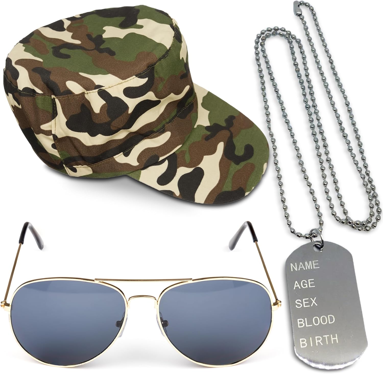 Hey ! Tu cherches un déguisement militaire complet pour une fête, un cosplay ou un événement ? Ce costume est parfait ! Il est neuf avec étiquettes, jamais porté, et comprend une ceinture à balles, un chapeau, des dog tags (plaques d'identité) et des lunettes de soleil. Le tout en vert, style camouflage, thème army. La marque c'est Redstar, taille unique régulière, donc adapté aux hommes et aux femmes. Idéal pour une soirée à thème, un Halloween, ou juste pour s'amuser en groupe. Le style est « tenue complète », donc tu n'as rien d'autre à acheter – tout est inclus. Hyper pratique, confortable, et ça fait son effet. Si tu veux jouer le soldat ou la soldate pour un jour, ce déguisement est top. Prêt à faire sensation !