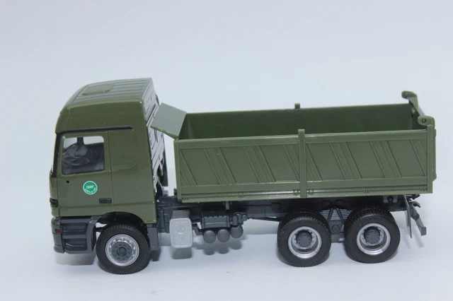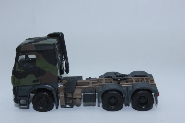 Bonjour les maquettistes ferroviaires et les collectionneurs de militaria ! Ce modèle Herpa au 1:87ème (échelle H0) reproduit avec précision un camion Mercedes-Benz Arocs 6x4 de la Bundeswehr (armée allemande) dans sa livrée de camouflage \flecktarn\.