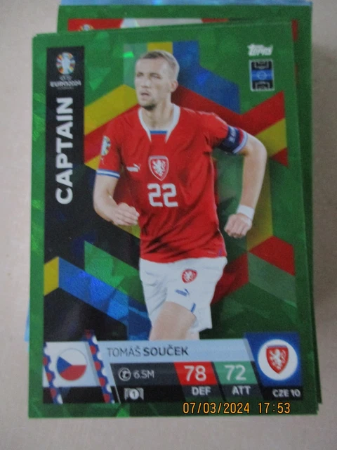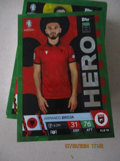 Vous complétez l'album officiel des stickers Topps de l'Euro 2024 ? Cet autocollant de la collection allemande (version vert parallèle) pourrait vous manquer ! Il est d'occasion, donc il a été retiré d'un paquet ou d'un échange, mais il est en bon état (vérifiez bien les photos pour les éventuels plis ou défauts). L'Euro 2024 se déroule en Allemagne, et ces stickers parallèles verts sont souvent plus rares que les versions standard. Parfait pour les collectionneurs de football, les enfants (et les adultes !) qui veulent remplir leur album le plus vite possible. Marque Topps, l'éditeur officiel. Vendu à l'unité. Si vous avez des doubles, c'est l'occasion de faire un échange virtuel en achetant celui-ci. Attention, l'état est occasion, donc pas neuf sorti du paquet, mais généralement très correct pour coller dans l'album. Précisez bien si vous cherchez un joueur en particulier, car la photo montre le design, mais pas forcément le joueur exact. Bonne chasse aux stickers !