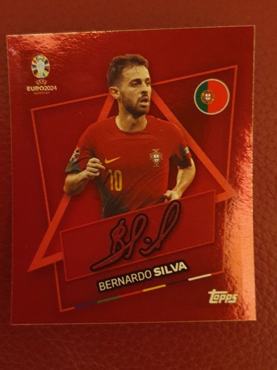 Collectionneurs de stickers football, cet autocollant Topps UEFA Euro 2024 est pour vous ! Il représente Bernardo Silva, la star portugaise, avec un design spécial 'Signature Étoile' en OR. L'autocollant est en état NEUF, neuwertig, parfait pour compléter votre album officiel de l'Euro 2024. Édité par Topps, la référence incontournable. Il provient d'Allemagne. L'autocollant est vendu individuellement, sans son paquet d'origine. C'est une pièce recherchée pour les fans du Portugal, de Manchester City, ou simplement pour les collectionneurs qui cherchent les stickers spéciaux et brillants. Un excellent moyen d'avancer dans votre collection ou d'échanger avec d'autres collectionneurs. Vérifiez les photos pour l'état exact (pas de plis, coins nets). Idéal aussi pour la décoration d'un carnet, d'un casier. Plongez dans l'ambiance du championnat d'Europe avec ce sticker de qualité ! Livré soigneusement protégé.