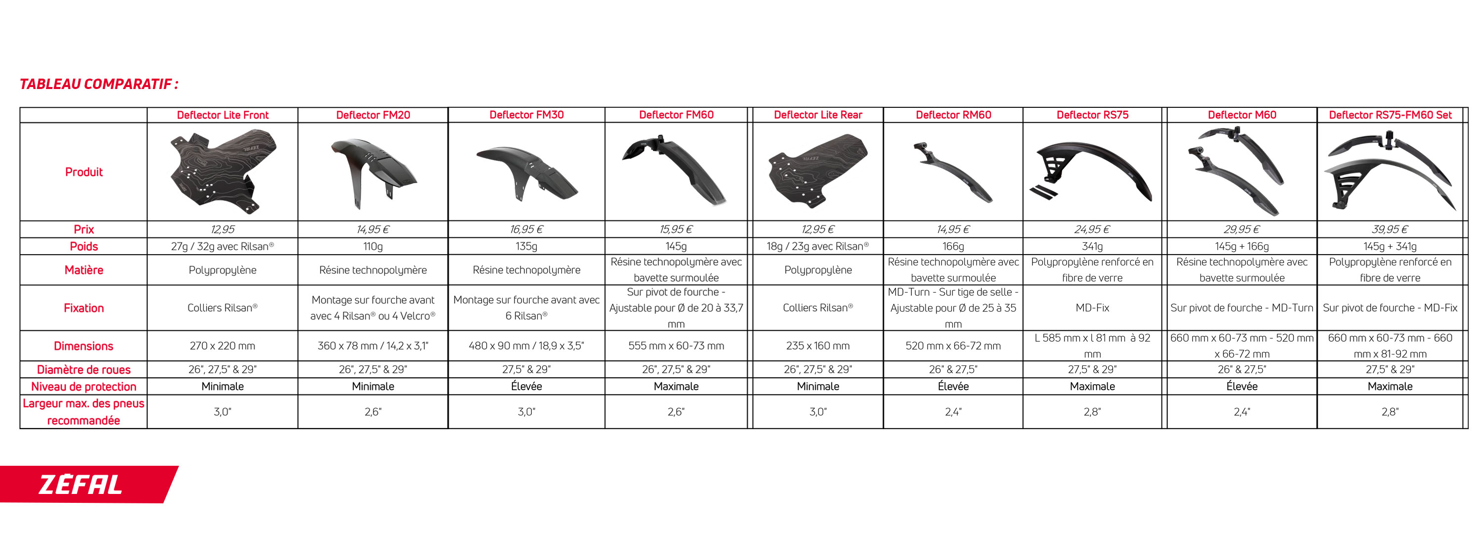 Le garde-boue Zefal Deflector FM60, c’est la solution anti-boue et anti-projections pour ton VTT. Monté à l’avant, il protège ton visage et ton cadre des éclaboussures en sortie trail ou en ville les jours de pluie. Fabriqué en France en technopolymère résistant, il pèse seulement 145g. Il est compatible avec les roues de 26\, 27,5\ et 29\. Le modèle ZMG102 est facile à installer, sans outils, grâce à son système de fixation réglable. Neuf, dans son emballage d’origine. Si tu en as marre de finir couvert de boue, ce garde-boue est un investissement malin. Efficace, léger et durable.