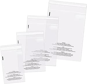 Pratique pour les vendeurs, les créateurs ou pour le rangement ! Ce pack combiné contient 400 sacs en polypropylène transparent (OPP) avec fermeture auto-adhésive (ressable). 4 tailles incluses : 6x9 pouces, 8x10, 9x12 et 11x14 pouces. Épaisseur 1.5 MIL, suffisamment solide pour protéger documents, cartes, petits objets, vêtements, etc. Impression avec l'avertissement de sécurité 'Risque d'étouffement' en plusieurs langues, conforme aux exigences pour la vente de petits articles. Marque Flipify. Idéal pour l'emballage de produits sur eBay, Etsy, en boutique, ou pour organiser à la maison. Sacs cristal clairs pour une belle présentation. Parfait pour les bijoux, les pièces détachées, les collections. Neuf, jamais utilisé. Un stock économique pour longtemps !