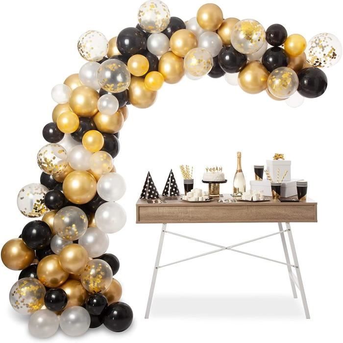 Pour décorer ta prochaine fête d'anniversaire avec style ! Cette guirlande de ballons en or et noir, avec des ballons à confettis intégrés, est vraiment chouette. Elle est neuve, en emballage d'origine, prête à accrocher. Le motif \Joyeux Anniversaire\ est inclus. Parfaite pour une soirée élégante ou un thème noir/or. Matériaux : carton, latex, papier. Facile à installer, elle donne tout de suite une ambiance festive. Livraison rapide. Si tu veux impressionner tes invités sans te ruiner, cette déco est idéale. Un must-have pour les photos de party !