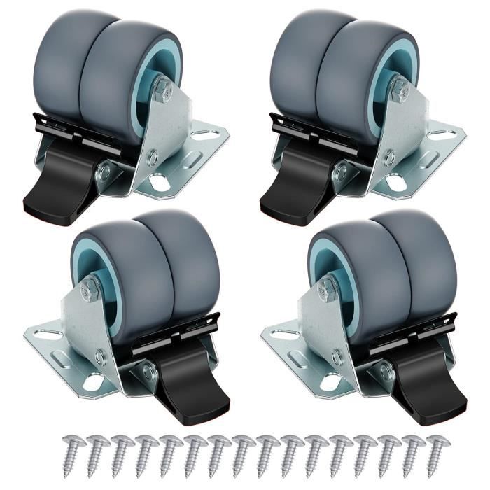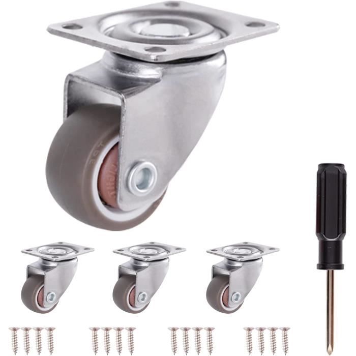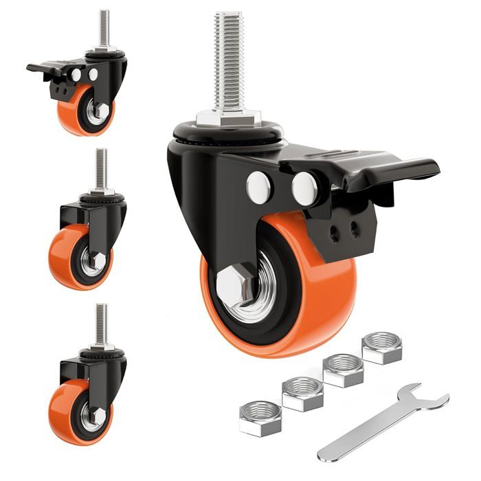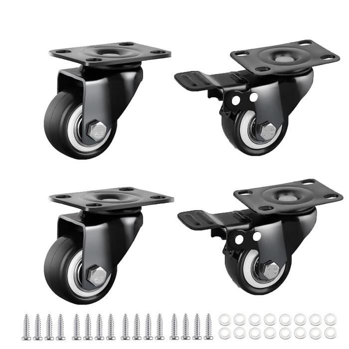 Pour rendre tes meubles, étagères, ou caisses de rangement super mobiles et faciles à déplacer, même chargés ! Ce lot contient 4 roulettes pivotantes de 50mm de diamètre, avec un frein/feststellersur chaque roue. La capacité de charge est impressionnante : 100kg par roue, soit 400kg pour le set de 4 ! Le revêtement de roulement est en gomme grise, ce qui protège les sols et roule silencieusement. Elles sont pivotantes à 360°, donc une maniabilité parfaite. La marque est générique (SOTECH sur le titre), et elles sont neuves. Parfaites pour un plan de travail d'atelier, un coffre à outils lourd, une machine, ou même un lit surélevé. Le frein permet de bloquer l'ensemble pour qu'il ne bouge plus pendant l'utilisation. Installation simple, généralement avec une plaque de fixation et des vis. Un investissement malin pour gagner en ergonomie et ne plus se faire mal au dos à pousser des charges lourdes. La liberté de mouvement, c'est maintenant !