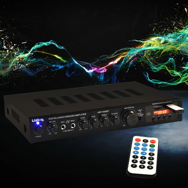 Tu organises une fête, un petit événement, ou tu veux simplement un ampli polyvalent pour ta maison ? Cet amplificateur stéréo Bluetooth est une petite bête ! Il délivre jusqu'à 240 Watts de puissance (valeur PMPO, donc la puissance réelle est moindre mais suffisante pour une pièce). Le gros plus : il est livré avec DEUX micros sans fil (ou à fil ? À vérifier), parfait pour le karaoké ou les annonces. Il a aussi un tuner FM, des entrées USB et carte SD pour lire tes MP3, et une entrée AUX pour brancher un téléphone ou une tablette. Il y a un écran d'affichage et une télécommande. Dimensions : 43x24x6,5 cm, couleur noire. C'est un produit de la marque etc-shop, neuf. Parfait pour animer un garden-party, une soirée entre amis, ou équiper un petit bar. Branche tes enceintes et c'est parti !