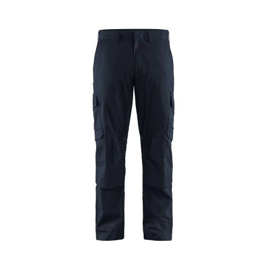 Pour le boulot ou le bricolage, ce pantalon cargo est super fonctionnel et confortable ! En toile coton/polyester résistante, il propose un design 5 poches classique, PLUS des poches genouillères intégrées pour plus de protection. Taille élastiquée à la ceinture pour un ajustement facile, coupe droite. Disponible en noir et en marine, et dans un large choix de tailles (du 28 au 56). Neuf avec étiquettes, jamais porté. Idéal pour les métiers du BTP, la mécanique, le jardinage, ou simplement pour un look utilitaire décontracté. Lavable en machine, il est fait pour durer. Prêt à affronter ta journée !
