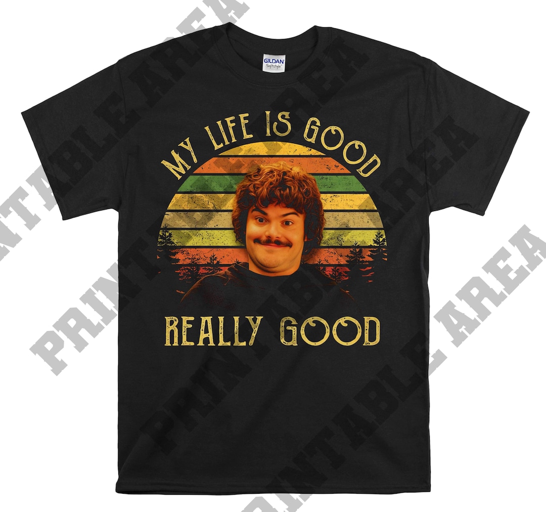 Hey, voici un super t-shirt pour les fans de Nacho Libre ! C'est un modèle unisexe, donc il convient aussi bien aux hommes qu'aux femmes. Le design est imprimé avec la phrase cultissime « My Life Is Good Really Good ». Il est fait en 100% coton, donc super confortable à porter toute la journée. La coupe est classique, manches courtes, et la couleur est noir comme sur la photo. La marque est Gildan, une valeur sûre pour les t-shirts de qualité. Taille XL pour les mensurations hommes (ou femmes qui aiment les coupes oversize). Fabriqué aux États-Unis, il est tout neuf, jamais porté, encore dans son état d'origine. Parfait pour un look décontracté, un cadeau fan, ou juste pour afficher votre humour. Le textile est respirant, facile à entretenir, et le print tient bien dans le temps. Idéal pour les sorties, les festivals, ou même en pyjama confortable le week-end. On adore le côté vintage et décalé du motif, vraiment unique !