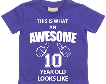 Coucou ! Je vends un t-shirt pour enfant, parfait pour fêter les 10 ans. Le design affiche fièrement \This is What an Awesome 10 Year Old Looks Like\ (littéralement : \Voici à quoi ressemble un enfant de 10 ans génial\). Il est neuf avec étiquettes, en coton doux, de coupe régulière et à manches courtes. Fabriqué au Royaume-Uni par la marque Reality Glitch, il est disponible en bleu et se lave en machine. C'est un vêtement unisexe, idéal pour offrir à un fils, une fille, un neveu ou une nièce pour son grand jour. Le motif graphique est sympa et moderne, et le thème anniversaire est clairement mis en avant. Si vous cherchez un cadeau décontracté, pratique et qui fait sourire, ce t-shirt est une valeur sûre. Pas de personnalisation supplémentaire, mais le message est déjà top. Livraison rapide pour ne pas rater la fête ! Parfait pour les goûters, les sorties ou juste pour le quotidien d'un enfant fier d'avoir 10 ans.