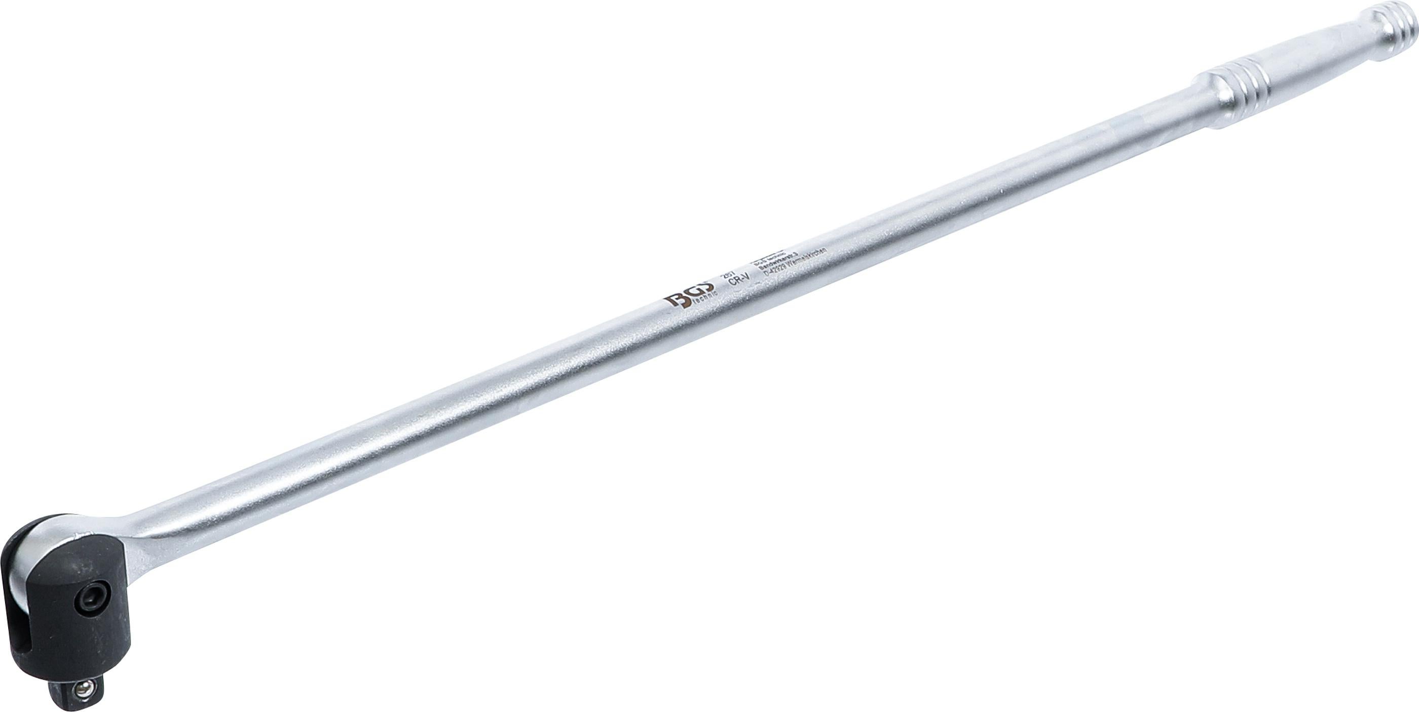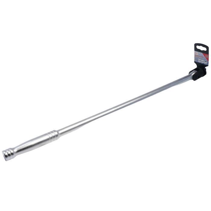 Cette poignée articulée BGS est une clé à cliquet ultra-longue (610 mm) avec un carré d'entraînement de 1/2 pouce. Elle permet de démultiplier la force et d'atteindre un couple de serrage jusqu'à 500 Nm, idéale pour desserrer ou serrer des écrou très bloqués (roues de voiture, boulons de suspension, etc.). La tête est articulée pour s'adapter aux angles difficiles. Fabriquée en acier robuste, référence BGS 267. Neuf, jamais utilisé. Indispensable pour les mécaniciens, les bricoleurs avancés, ou ceux qui font leurs réparations auto/moto. Bien plus efficace qu'une clé classique quand on manque de force ou d'accès.