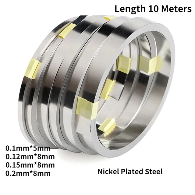 Hey les fabricants de batteries et les bricoleurs en électronique puissante ! Ces bandes ou feuilles en acier nickelé sont conçues pour souder entre elles les cellules 18650 (ou autres formats similaires) et créer des packs batteries. Le nickel assure une bonne conductivité électrique et une résistance à l'oxydation. Utilisées avec une soudeuse à points (spot welder) pour des connexions solides et sûres, évitant la surchauffe des cellules. Marque générique, fabriqué en Chine. Essentielles pour les projets de vélos électriques, powerbanks DIY, outils sans fil, ou systèmes de stockage d'énergie. Choisissez l'épaisseur et la largeur adaptées à votre courant. Un matériau de base pour qui veut monter ses propres batteries série/parallèle. Attention, manipulez les cellées avec précaution !