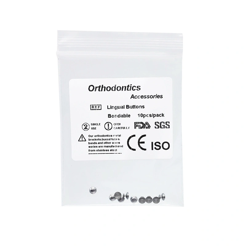 Attention, produit réservé aux professionnels de la santé dentaire (orthodontistes, prothésistes, étudiants). Ceci est un lot de 100 boutons linguaux orthodontiques (lingual buttons). Ce sont de petites attaches en métal (sans doute en acier inoxydable) qui se collent sur la face interne des dents (côté langue) lors de traitements orthodontiques spécifiques (mécaniques linguales ou comme ancrage supplémentaire). Ils ont une base ronde avec un mesh (treillis) pour une meilleure adhésion de la colle, et un bouton monobloc où l'orthodontiste peut attacher un élastique ou un fil. La marque est Mybeautifulteeth. Conditionnement : 10 sachets de 10 pièces chacun, donc 100 au total. Neuf, stérile probablement (vérifier l'emballage). Origine Chine. Utilisation strictement professionnelle, nécessitant les compétences et les matériaux adaptés (collage, polymérisation). Parfait pour le cabinet ou le laboratoire dentaire qui a besoin de ce type de consommable en stock. Vérifie la conformité aux réglementations de ton pays avant usage clinique. Livraison discrète.