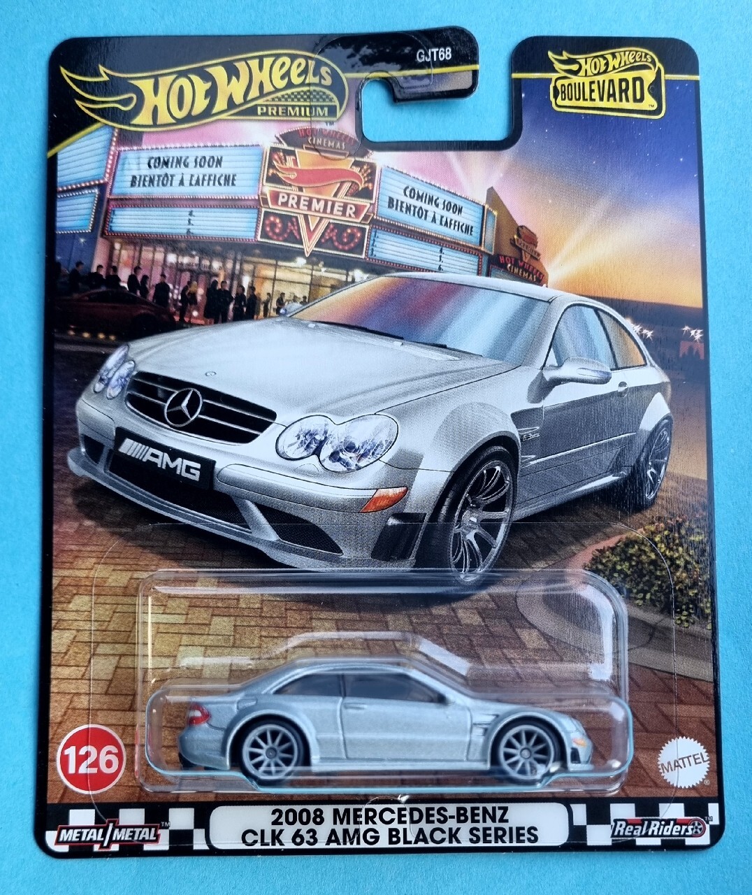 Hey les collectionneurs de miniatures ! Voici une petite perle : la Mercedes-Benz CLK 63 AMG 2008 de la série Premium Boulevard de Hot Wheels, référence #126 (code BBJBL07). Elle est à l'échelle 1:64, comme d'habitude avec Hot Wheels, et elle est neuve, jamais sortie de son blister ou de sa boîte. Le niveau de détail est supérieur aux modèles classiques, avec des jantes plus travaillées, une peinture soignée, et souvent des décorations supplémentaires. Parfaite pour compléter ta collection de voitures allemandes, de modèles AMG, ou simplement pour offrir à un fan de belles autos. Hot Wheels, c'est la référence en matière de miniatures voitures, alors la qualité est là. Pas d'UPC, mais le modèle est bien identifié. Que tu la exposes sur ton bureau, ta vitrine, ou que tu la gardes précieusement dans sa boîte, cette CLK 63 AMG est un ajout stylé à n'importe quelle collection. À saisir avant qu'elle ne devienne introuvable !