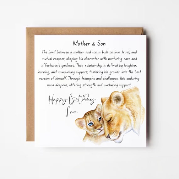 Coucou ! Je vends une jolie carte d'anniversaire sur le thème 'Mère et Fils'. Elle est destinée à une maman, de la part de son fils. Le format est A5 (21cm x 15cm), ce qui est un bon format, ni trop petit ni trop grand. C'est une carte pliée, avec une enveloppe incluse, comme il se doit. La marque est Pickture-This Greeting Cards. Le thème est 'Joyeux Anniversaire' et l'occasion est bien l'anniversaire. Elle est classée pour les adultes. Elle est personnalisable ? Non, elle est telle quelle, mais le design est déjà très parlant. Elle est fabriquée au Royaume-Uni. La carte est neuve, dans son emballage d'origine (souvent un film plastique ou une pochette). Parfaite pour envoyer un message touchant à sa maman pour son anniversaire !