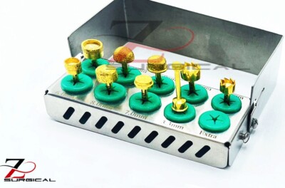 Destiné aux professionnels de la chirurgie dentaire et implantologique ! Ce kit complet de la marque WholeDent (modèle HNTSK-V100T) contient tout le nécessaire pour réaliser des procédures de sinus lift (élévation du plancher sinusal) par approche latérale ET crestale. Il comprend des fraises guides (diamètres 2.0mm et 6.5mm), des curettes sinusales de différentes longueurs (155 à 170mm), un compresseur osseux/jauge de profondeur (138mm), des butées de perçage et un coupeur latéral. Fabriqué en Israël avec des instruments en acier inoxydable et des guides en plastique. Neuf, stérile, dans son emballage d'origine. Un outil de précision pour des interventions complexes en toute sécurité.